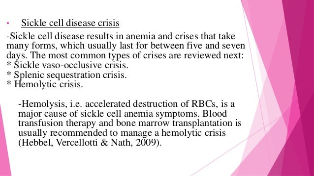 43+ Sickle Cell Anemia Crisis Types Images. A severe attack, known as sickle cell crisis, can cause pain because blood vessels can become blocked or the defective red blood cells damage body organs. Symptoms of sickle cell anemia usually show up at a young age.